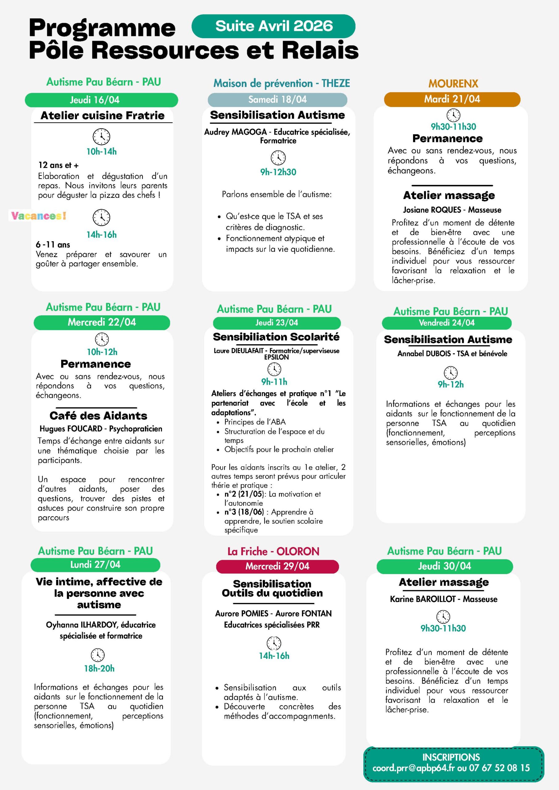 Autisme Pau Béarn est une association créée en 2004 qui vise à soutenir, aider accompagner les familles ainsi qu’à promouvoir des programmes éducatifs globaux structurés et adaptées à l’enfant, à l’adolescent ou à l’adulte TSA. L’association met en place des services divers pour les familles, lutte contre l’isolement et se fait porte parole des personnes TSA ainsi que de leur famille ….